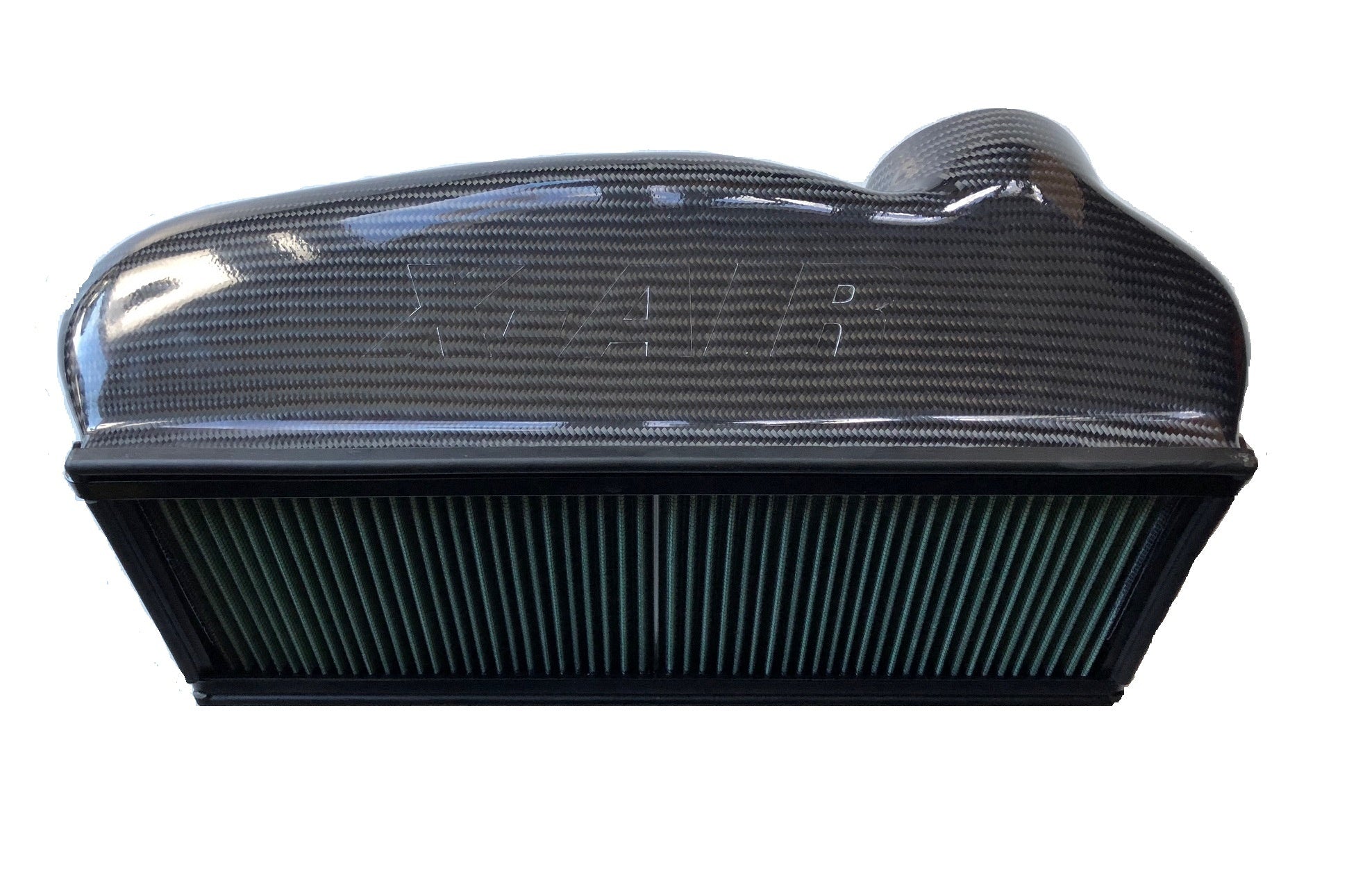 The XAIR OTR has the largest air filter panel on the market, the filter size is 460mm x 180mm which provides more Air Flow than even the biggest Pod Filters as well as supplying much cooler air from in front of the car compared to the superheated air from within the engine bay from the traditional Intake location. Extensive testing and research has proven that the larger the Filter area, the less restriction & servicing required. Outlet Dimensions are 96mm internal diameter, 108mm outer diameter for the Plastic and 100mm internal diameter, 106mm outer diameter for the Gloss Black and Carbon